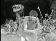 1914 B/W Medium shot Caveman inventing bow and arrow with branches, sticks and string - Stock-Video
