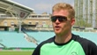 Reece Topley (Oval Invincibles) interview SOT / GVs stand set up in stands with 'The Hundred' signs / lights (lighting rig) / Sam Billings (Oval Invincibles) interview SOT