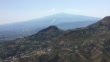 Panning from the active volcano Mount Etna to the beautiful hilltop town of Castelmola perched high above the Mediterranean Sea, a scooter passes below - HD Stock-Video