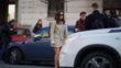MILAN, ITALY - FEBRUARY 22: Paola Alberdi wears sunglasses, a bag with a golden chain strap, a beige oversized blazer jacket/dress, a white shirt, a necklace, outside Bottega Veneta, during Milan Fashion Week Fall/Winter 2020-2021 on February 22, 2020 in Milan, Italy. (Footage by Edward Berthelot/Getty Images)