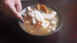 Paste aus Reismehl oder gekochten chinesischen Nudeln quadratisch mit Schweinefleisch - 4K Stock-Video