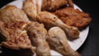 Polish chicken imports may be banned as salmonella cases rise; ENGLAND: INTVarious shots of chicken meat and chicken products on plates on table - including chicken burger, carton of eggs, plate of chicken escalopes and chicken drumsticks