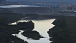 HA WS TU Pond, flooded land, Olympics Coastal Cluster venues, Adler Arena & Iceberg Skating Palace, flags on flagpoles, vehicles driving, Caucasus Mountains BG.