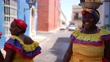 Portrait of palenqueras walking on the street in Cartagena, Colombia