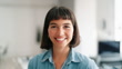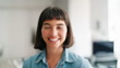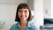 Close-up portrait of smiling latin businesswoman standing at startup. Confident female professional at coworking office.