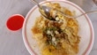 Pouring Chili Sauce auf Pan Fried Crispy Mussel - HD Stock-Video