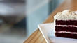 4 K : Rote Velet Kuchen serviert und Schneiden, Dolly Schuss - 4K Stock-Video