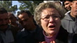 Civil unrest: report on the vegetable seller who inspired national revolt; TUNISIA:INT CARReporter in passenger seat of catTRACKING SHOT along road past trees and arid plain'Sidi Bouzid' road signSidi Bouzid:EXTWide shot of buildings (cityscape)Flat roofs of housesHigh angle view of street in residential areaVarious of pro-democracy protesters gathered in main squareElderly woman ululating (ululation) SOTMan holding up document and speaking (not heard)Protesters with placardsVarious of placard showing photograph of Mohamed Bouazizi (Vegetable seller who burnt himself to death)Protester looking upGroup of demonstratorsVox pops (local people speak about Mohamed Bouazizi - a hero, freed me of fear of oppression and government)Fruit and vegetables on cartPeople standing next to fruit and veg cart (which was next to Mohamed Bouazizi's cart)Women (wearing veils) along streetCars along roadReporter to cameraSpot where Mohamed Bouazizi set himself on fire marked with red paint on roadCars driving over red marking