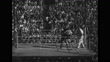 [Sportfolio episode 11] Countdown / Sportfolio intro sequence / card: "place commercial here" / crowd outdoors watching boxing match between Sugar Ray Robinson and Gerhard Hecht / action shot from match / Hecht goes down / close shot of Hecht writhing on canvas while Robinson walks to neutral corner, referee standing over Hecht counting / close shot of woman in crowd looking concerned / Hecht lying on canvas as Robinson leaves boxing ring / two shots of Robinson with police escort walking away through angry crowd / Sportfolio end sequence