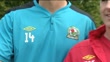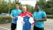 BLACKBURN, ENGLAND - SEPTEMBER 1: (AUDIO OMITTED) (L-R) Striker Yakubu, manager Steve Kean and center-back Scott Dean hold up team shirts as they pose for photos at Brockhall training centre on September 1, 2011 in Blackburn, England. (Footage by Niche Sport Media via Getty Images)