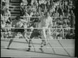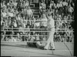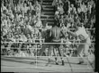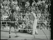 B/W 1951 Sugar Ray Robinson knocking Gerhard Hecht down in boxing match / Hecht writhes in pain