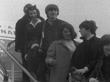 The Beatles leave London Airport; ENGLAND: London: LAP (London Airport):EXTMS The four (Paul McCartney, George Harrison, Ringo Starr, John Lennon)CMS Ditto LV Fans on balcony MS Fans with Tara Boys MS Side - Eleanor Bron with The Four MS Ditto MS All of them on plane steps with hostess BV Up plane steps Neg 16mm Brenards 38 secs 24 ft