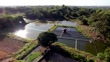 TARLAC, PHILIPPINES - 05th January 2024 - Scenic aerial drone landscape of a small, flooded rice field plantation and fish farm in Tibagan Barangay rural locality of Tarlac, Northern Luzon, Philippines, South East Asia