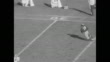 Title superimposed on a game, "Game of the Week, Michigan Crushes Army" / Pan of tens of thousands at Michigan Stadium; marching band forms a large "M" on the football field / Army quarterback Donald Holleder handoff to Patrick Uebel, who fumbles; Michigan tackle Lionel Sigman recovers / Michigan quarterback James Maddock fakes a handoff, pass to halfback Terry Barr; Barr scores touchdown / Army fullback Vincent Barta kicks, Michigan's Barr long run for touchdown / another Army fumble, Michigan recovers / Michigan's Maddock pass to halfback Edward Hickey, run for gain / blocked pass / cutaway spectators / Maddock pass to Michael Rotunno, who scores touchdown for Michigan; referee raises arms to indicate touchdown; pan to crowd