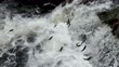 Forellen kämpfen gegen starke Strömungen in schäumenden Gewässern - 4K Stock-Video
