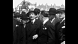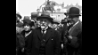 Two title pages in French and two close shots of members of Congress of French Parliament in front of Palace of Versailles / two shots of line of cars entering through gate in front of Palace / Pierre Laval, Labor Minister, standing in crowd / member of Congress walking towards camera / title page in French / close shot of two members of Congress standing in crowd / former prime minister Edouard Herriot standing in crowd / title page in French / two members of Congress standing in crowd / title page in French / former prime minister Theodore Steeg standing in crowd / soldiers marching in formation down street leading to Palace, crowd watching / title page in French / members of Congress gathered in hall of Palace awaiting election returns