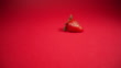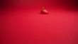 Ultra Close-Up Macro Moving Track Shot von einem frischen Reifen köstliche In-Season bright Red Strawberry Sitzen auf einem roten Hintergrund - 4K Stock-Video