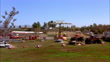 WIDE ANGLE OF MONSTER TRUCKS JUMPING CARS AT COUNTY FAIR. CARNIVAL RIDES, CIRCUS TENTS IN BACKGROUND. 120 FPS SLOW MOTION. PREVIEW FILE HAS BEEN TRIMMED FROM MASTER CLIP 2389-032. FOR ADDITIONAL FOOTAGE, SEE CLIP 2389-922. FULL CLIP AVAILABLE BY CALLING SONY PICTURES STOCK FOOTAGE.