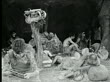 1914 B/W Wide shot Caveman inventing bow and arrow with sticks and string - Stock-Video