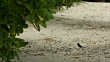 Willie Wagtail bird foraging for insects on the beach, medium wide