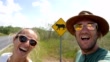 Junges Paar macht Selfie auf leerer Autobahn in der Nähe von Florida Panther Warnschild - 4K Stock-Video